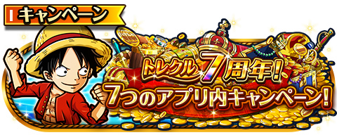 ワンピース トレクル キャンペーン第1弾&第2弾開催中!ナミがバスタオル姿でセクシー過ぎる!スペシャル島 「首領・クリーク艦隊総攻撃」も登場! 「トレジャーゲットキャンペーン」ログインするだけで全員もらえる! 「トレジャーゲットキャンペーン」では、期間中(7月17日( 『one piece トレジャークルーズ』が遂に6周年! 皆様への感謝を込めて、超豪華キャンペーンを開催! 本日5/8(金)、6周年特設サイトもオープン!